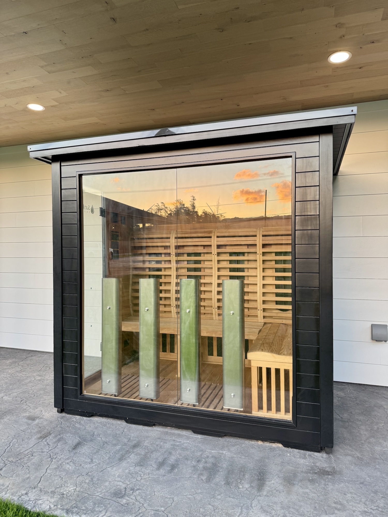 Sun Home Luminar™ Outdoor 5-Person Full Spectrum Infrared Sauna with Full-Spectrum Wavelengths Integrated full-spectrum infrared heating system, delivering near, mid, and far wavelengths. Innovative low EMF heaters provide safe sauna experience. Chromotherapy is the science of using colored LEDs to provide therapeutic benefits. Each color provides a different healing property. Please use safely and under adult supervision. A general guideline is 15 minutes, also please note that afternoon sun may increase sauna temperatures.