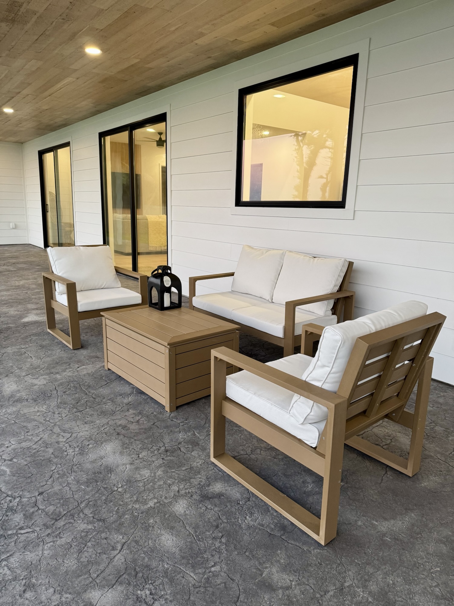 Our property is complete with an outdoor patio and a beautifully landscaped front and back yard. We also have an outdoor shower with hot water to rinse off after the beach. We provide some beach toys for kids, beach chairs, umbrellas, and beach towels for our guests!